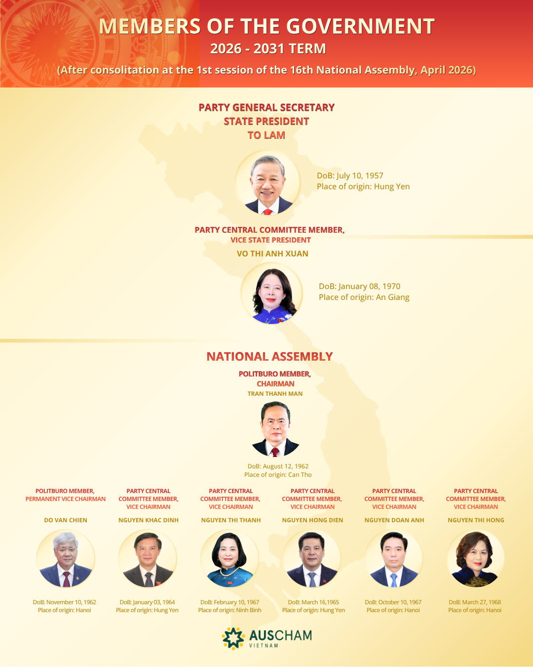 AusCham Vietnam has extended its congratulations to General Secretary and State President To Lam, Prime Minister Le Minh Hung, National Assembly Chairman Tran Thanh Man, and other newly-elected leaders of the Vietnamese Government for the 2026–2031 term.