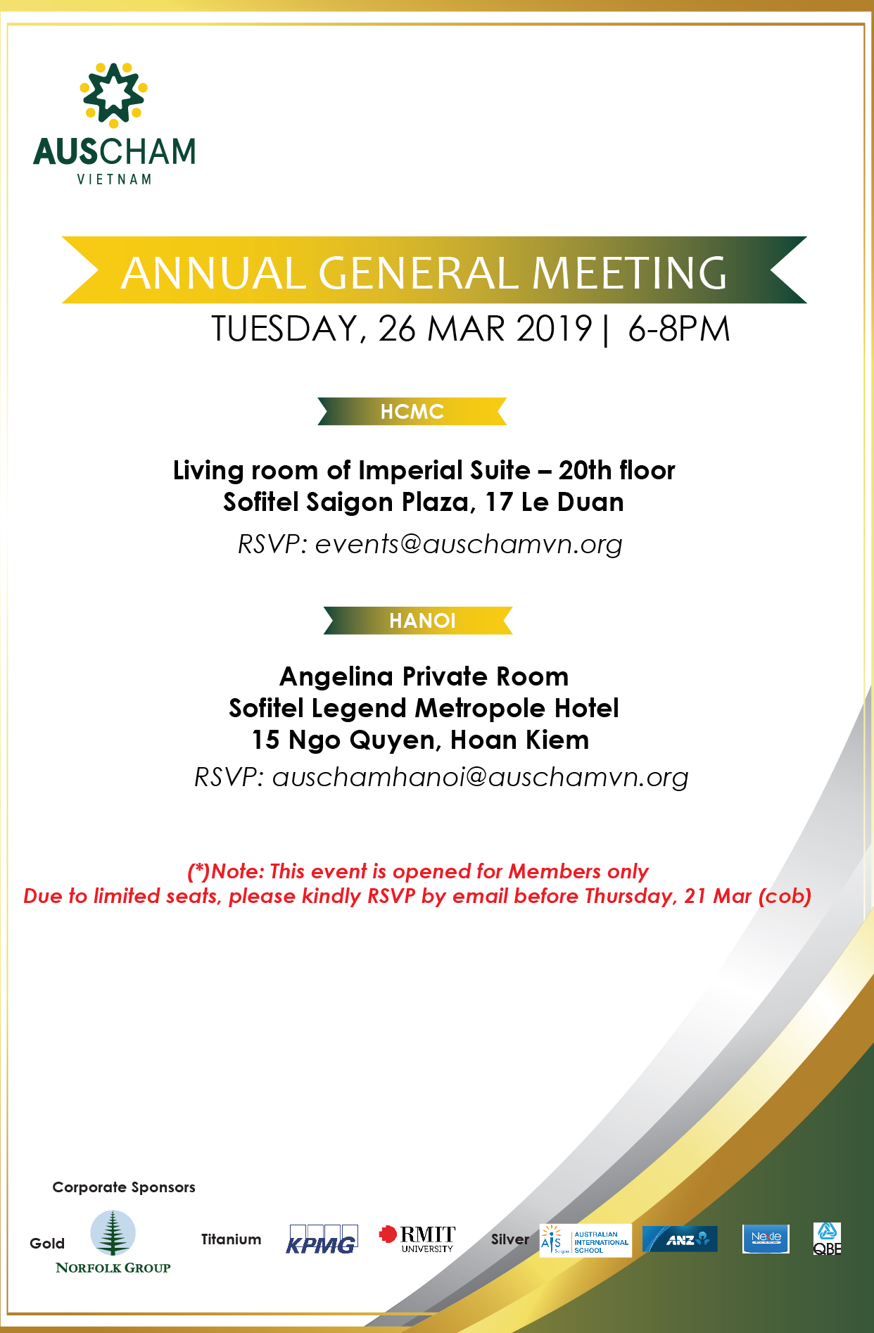 • 26 March @6pm (Tuesday) – AGM 2019 (Hanoi and HCMC)