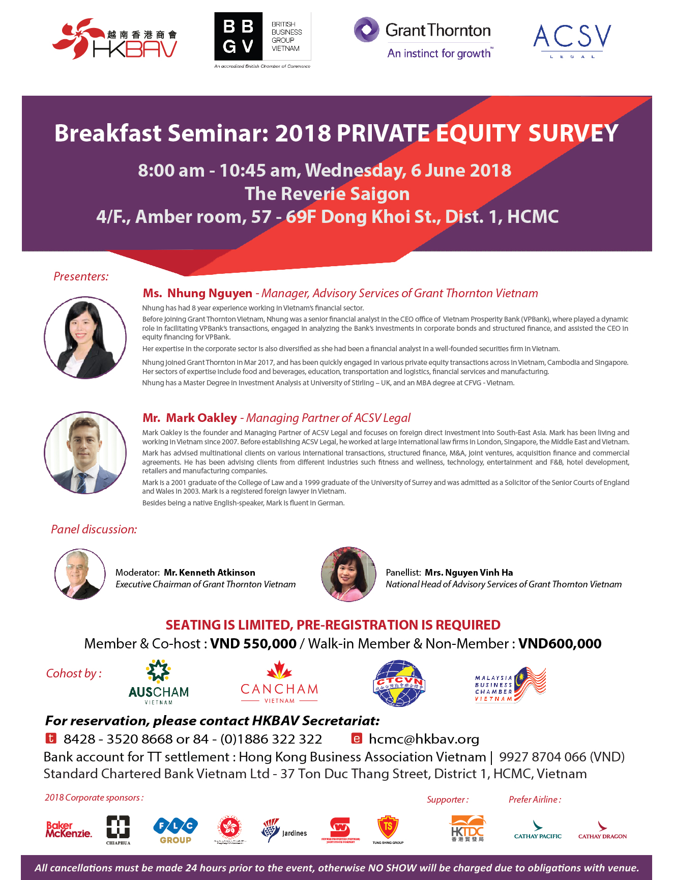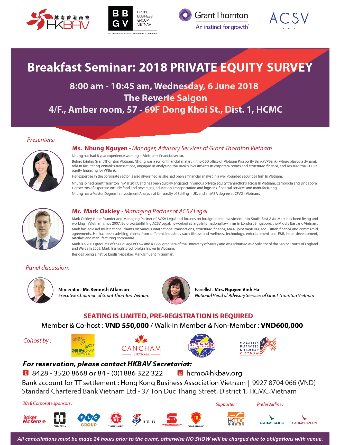 Please be kindly register your ticket to HKBAV Secretariat at hcmc@hkbav.org before 05th June, 2018.