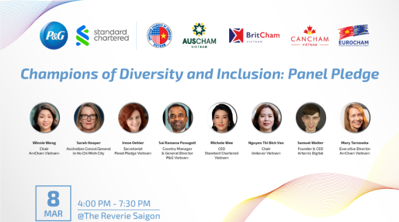 The event will also feature a panel discussion (with gender parity) featuring four prominent local business leaders who are personally committed to advancing DEI in their organizations and the broader community: P&G Vietnam Country Manager & General Director Sai Ramana Ponugoti, Standard Chartered Vietnam CEO Michele Wee, Unilever Vietnam Chair Nguyen Thi Bich Van, Founder and CEO Artemis Digital Samuel Walter.