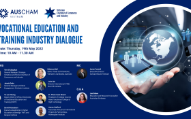 Thursday, 19 May 2022 – AusCham hosted the ‘Vocational Education and Training Industry Dialogue’ sponsored by the Victorian Chamber of Commerce and Industry (VCCI) and supported by the Vietnamese Vocational Education and Training (VET) institutes.