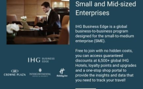 HG Business Edge is a global business-to-business program designed for the small-to-medium enterprise (SME). Free to join with no hidden costs, you can access guaranteed discounts at 6,500+ global IHG Hotels, loyalty points and upgrades and a one-stop shop portal to provide the insights and data that you need to track your travel!