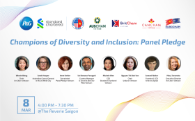 In commemoration of International Womenโs Day, join us for our first meetup of an inter-chamber coalition of Diversity, Equity, and Inclusion (DEI) champions and allies at The Reverie Saigon from 4:00-7:30 PM. This event is coordinated with and co-hosted by an informal coalition of chambers dedicated to advancing DEI, including: AmCham, AusCham, BritCham, CanCham, and EuroCham, with support from ...