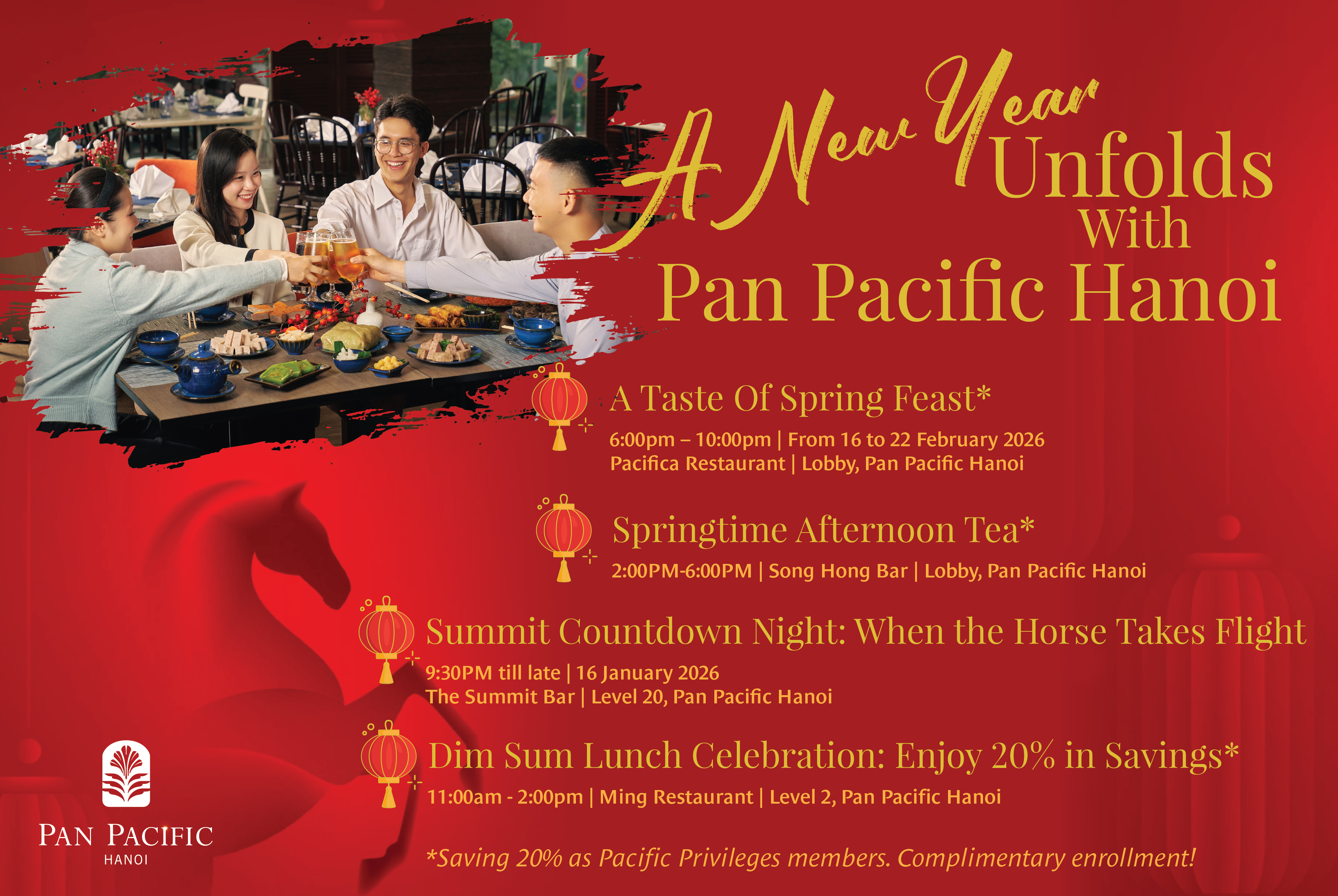 As the Lunar New Year draws near, a thoughtfully curated collection of festive dining experiences awaits, inspired by refined flavours and the spirit of togetherness, open throughout the Tet holiday, enhanced with an exclusive 20% savings for Pacific Privileges members.